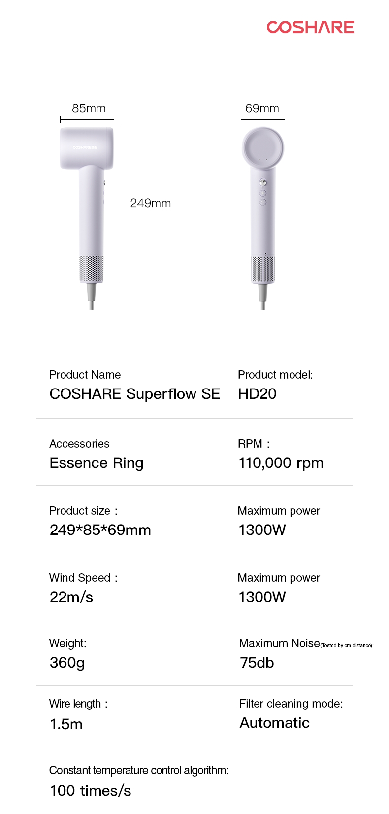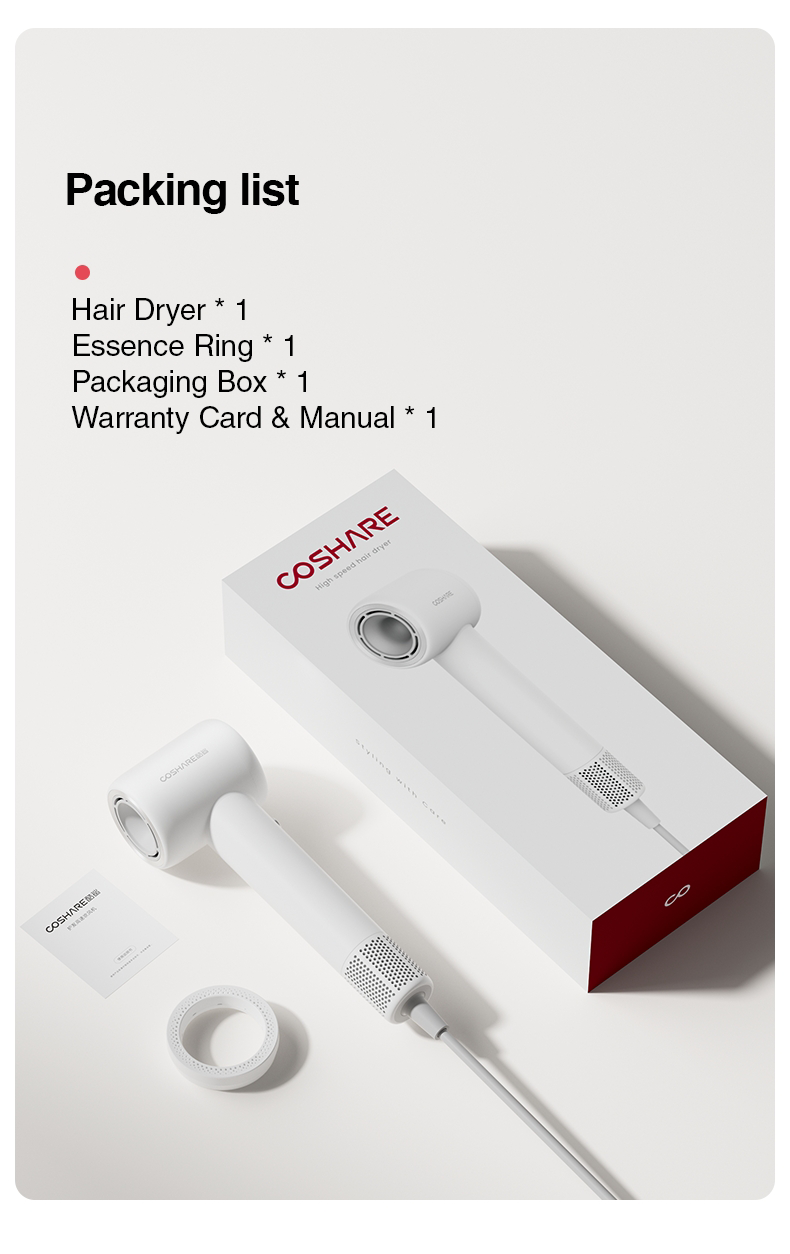 Coshare HD10E Pearl White-föhn-Haardroger met ionische technologie - 3 warmtestanden